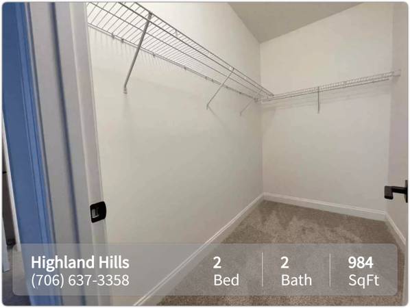 The location is a gift that keeps on giving. Our Grovetown, GA apartments are 20 minutes from employers like Fort Gordon, John Deer, MCG Health, and Augusta Technical College. As a resident of Highland Hills, you'll also be moments away from Euchee Creek Trails, Grovetown Library, Liberty Park Baseball Fields, Bryan Plaza, and a plethora of boutique shops. To top it all off, our homes for rent in Grovetown, GA are near Augusta, home to the Masters Golf Tournament, culturally rich sites, scenic outdoor places, foodie hotspots, and music venues. So, what are you waiting for? Book your private visit now!