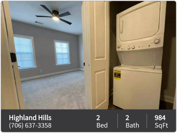 The location is a gift that keeps on giving. Our Grovetown, GA apartments are 20 minutes from employers like Fort Gordon, John Deer, MCG Health, and Augusta Technical College. As a resident of Highland Hills, you'll also be moments away from Euchee Creek Trails, Grovetown Library, Liberty Park Baseball Fields, Bryan Plaza, and a plethora of boutique shops. To top it all off, our homes for rent in