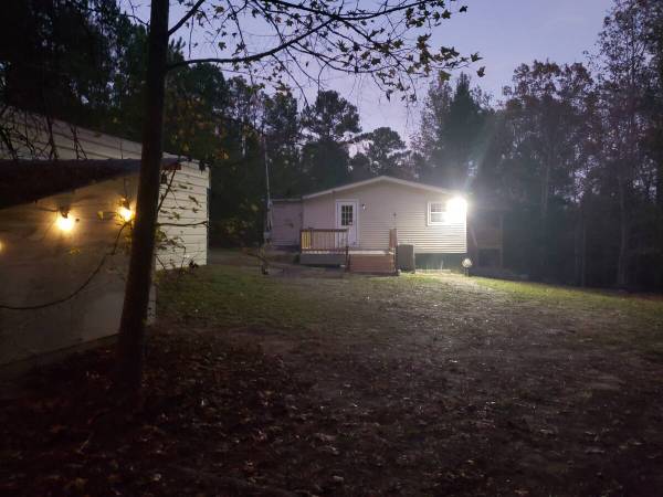 3 Bed 2 bath double wide mobile home with a back deck. Currently furnished and can be made available unfurnished. Home is on almost 4 acres with plenty of deer sightings. Home is on a well and uses Jefferson electric for electric company. There is a huge storage building that could be used as a work shop, ( it fits about 4 cars). Rent is $1500 a month (unfurnished) and $1795 (furnished). . If ad is up the house is still available. Home is off Old Louisville Road on Goldsboro road.