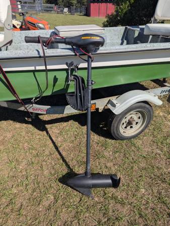 Sale includes: Boat, Trailer, Trolling Motor, two Life Jackets, two Telescoping Paddles, and a Life Gear Radio. ALL for only $1600.00! No "bones" about it -- this is a great deal! Get fishing tomorrow!