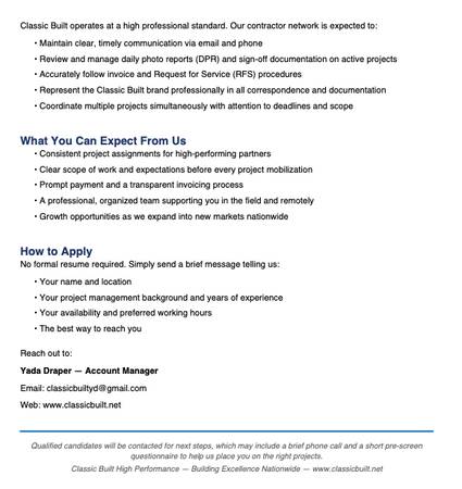 We're a national commercial interior construction company looking for a reliable Remote Project Manager in the Augusta area to join our growing contractor network.