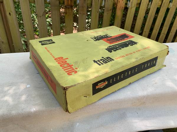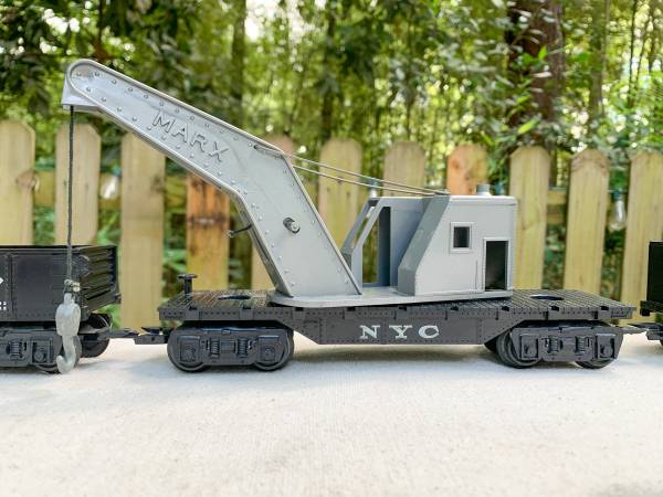 This Marx Train set was sold in the 1950's through Sears and Roebuck. It comes in the original Box with Model 666 Engine, Coal Tender, Crane Car, Coal Car, Spotlight Car and Caboose with the...