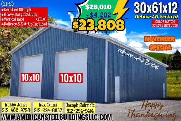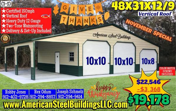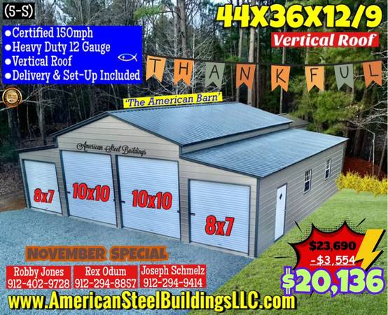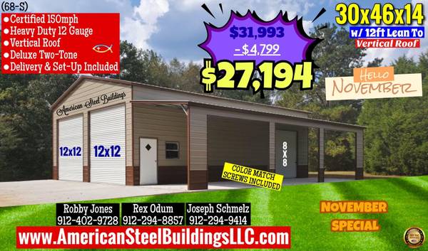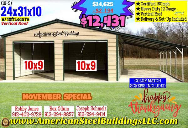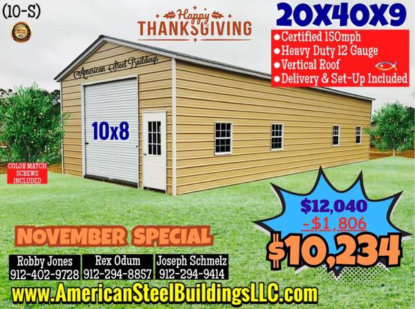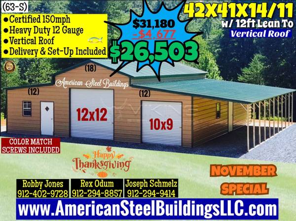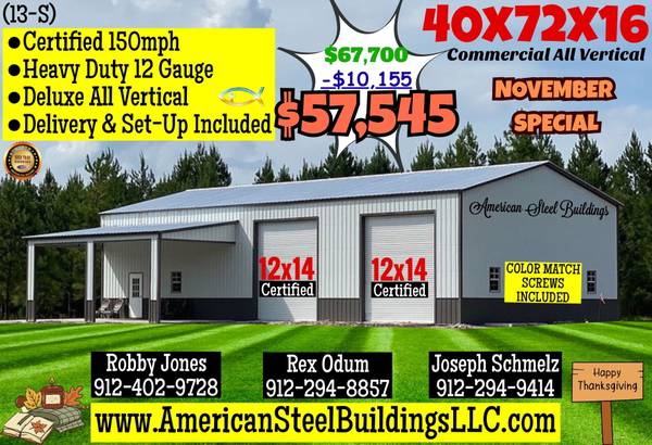 Leading Dealer of Metal Building in the USA All of our buildings are certified to meet code and comes with a 20 year warranty From Small Garages to 60' Commercial Warehouses. We have the building...