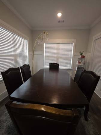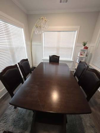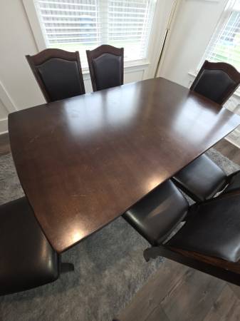 A very clean dining table. A few scratches, but the table is still in great shape. The table comes with 4 chairs, even though we see 5 chairs in the pictures.