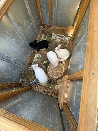 I have too many bunnies! Pictured are all boys but I also have two white and one brown females. Each come with two weeks worth of food can possibly deliver nearby east Aiken. TEXT ONLY PLEASE...