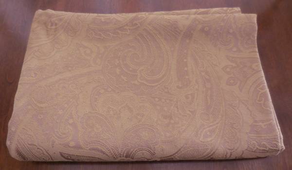 Tan 82"x120" tablecloth; has never been used. Machine wash and dry. Excellent new condition!