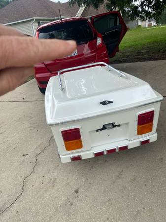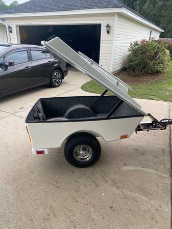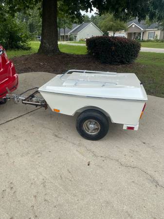 Fiberglass motorcycle trailer. In excellent condition condition. Carpeted inside. All lights work. Has rack for cooler. Tires in good condition. Will give bill of sale and has registration in Georgia. Call or text only will not answer emails.941-932-threefour nineseven