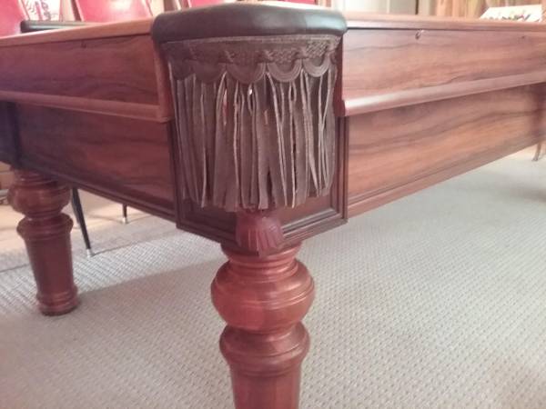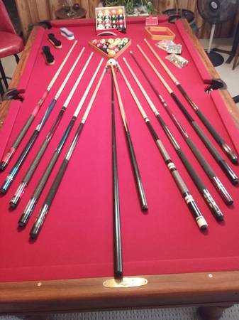 $1200 obo…For sale is an 8’ Vintage pool table by Brunswick. I’ve owned this pool table for 12 years and it has been covered when not in use and well kept. Comes with wooden wall mounted rack for pool sticks, numerous pool sticks, 3 ball racks, chalks, felt brushes, tip repair kit, 8” chalk holder with 6”