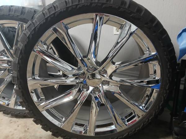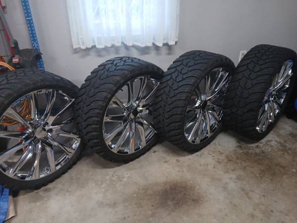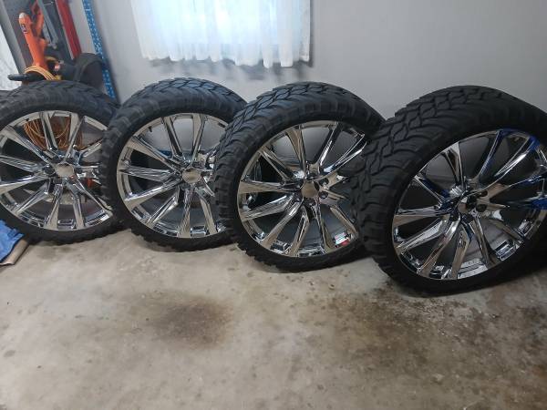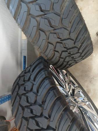 Sells for $4000.00 new that included rims, tires and taxes. The Terrain Attack M/T tire is for serious off-roaders or Jeep and truck owners who love the styling of an aggressive all-terrain tire and need authentic off-road performance. It is an extreme mud terrain tire with an asymmetrical tread and reinforced sidewall designed for rugged terrains. Some of the features are the open shoulder lugs that provide better traction in loose material like sand and mud. They are also designed for rapid evacuation of the built-up mud. The reinforced sidewall features large side-biters to maintain grip through extreme conditions or when aired down. The performance tread design on the Terrain Attack M/T has multiple sipes to grip soft terrain for better traction and less slippage. Mounted on C25 OE Concept rims, quality and style are essential. That’s why the 26×10 Chrome Wheel OE Concept C25 6×5.5 31 is expertly crafted to enhance the look of your vehicle, providing a perfect blend of elegance and durability.